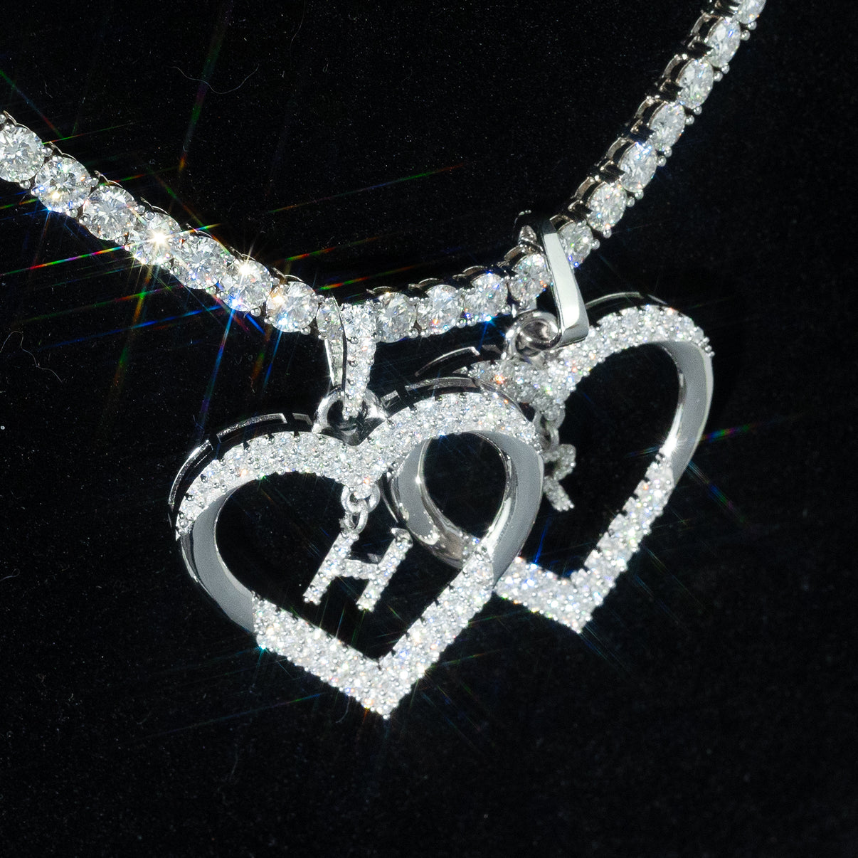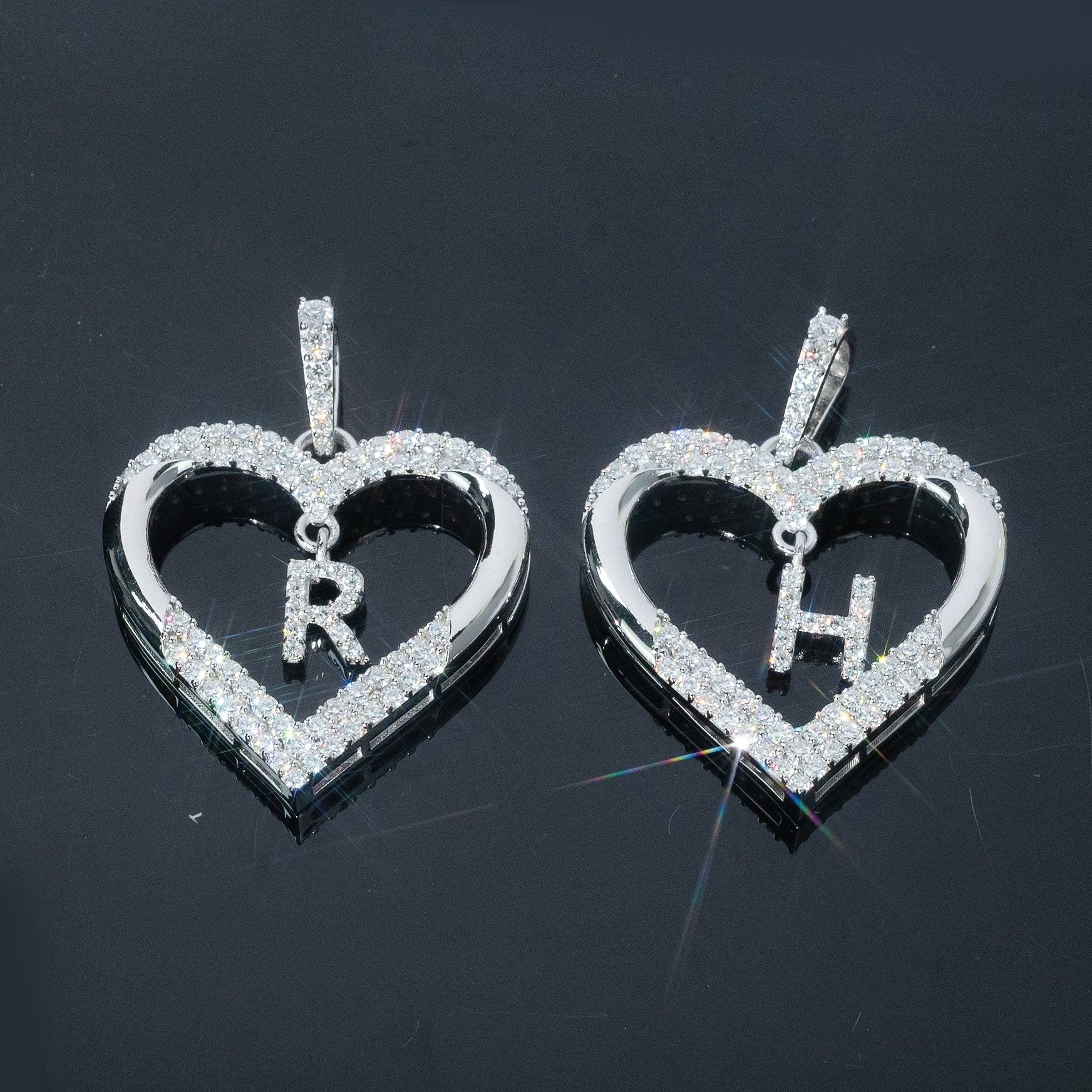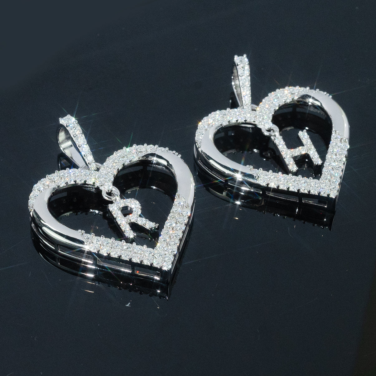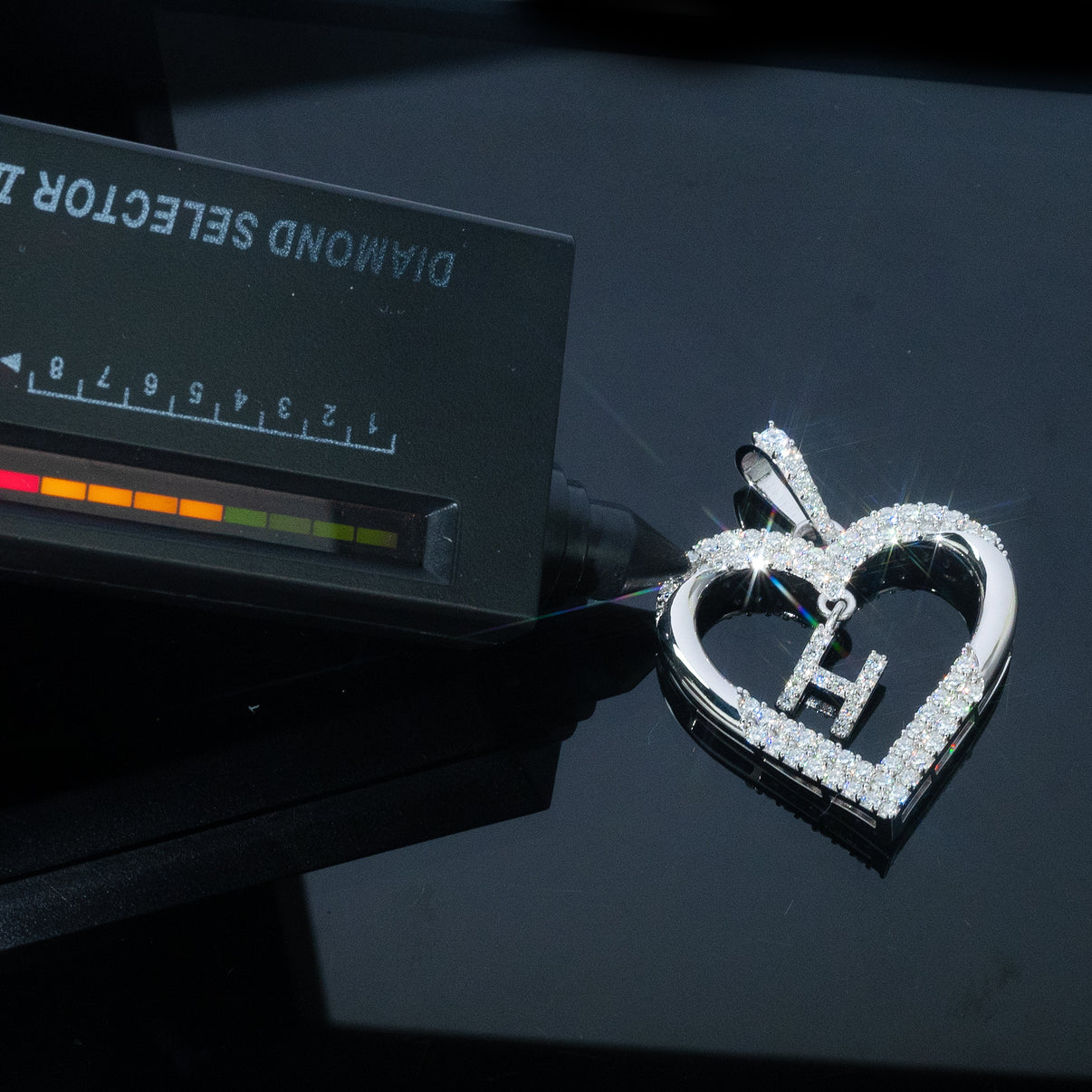 Minimal heart-shaped design with a custom letter, fully hand-set with moissanite for clean, lasting shine.