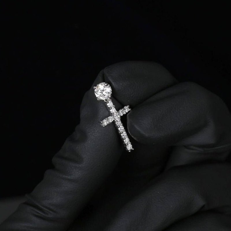 925 Silver Anti-allergic Mens Dangle Stud Cross Earrings