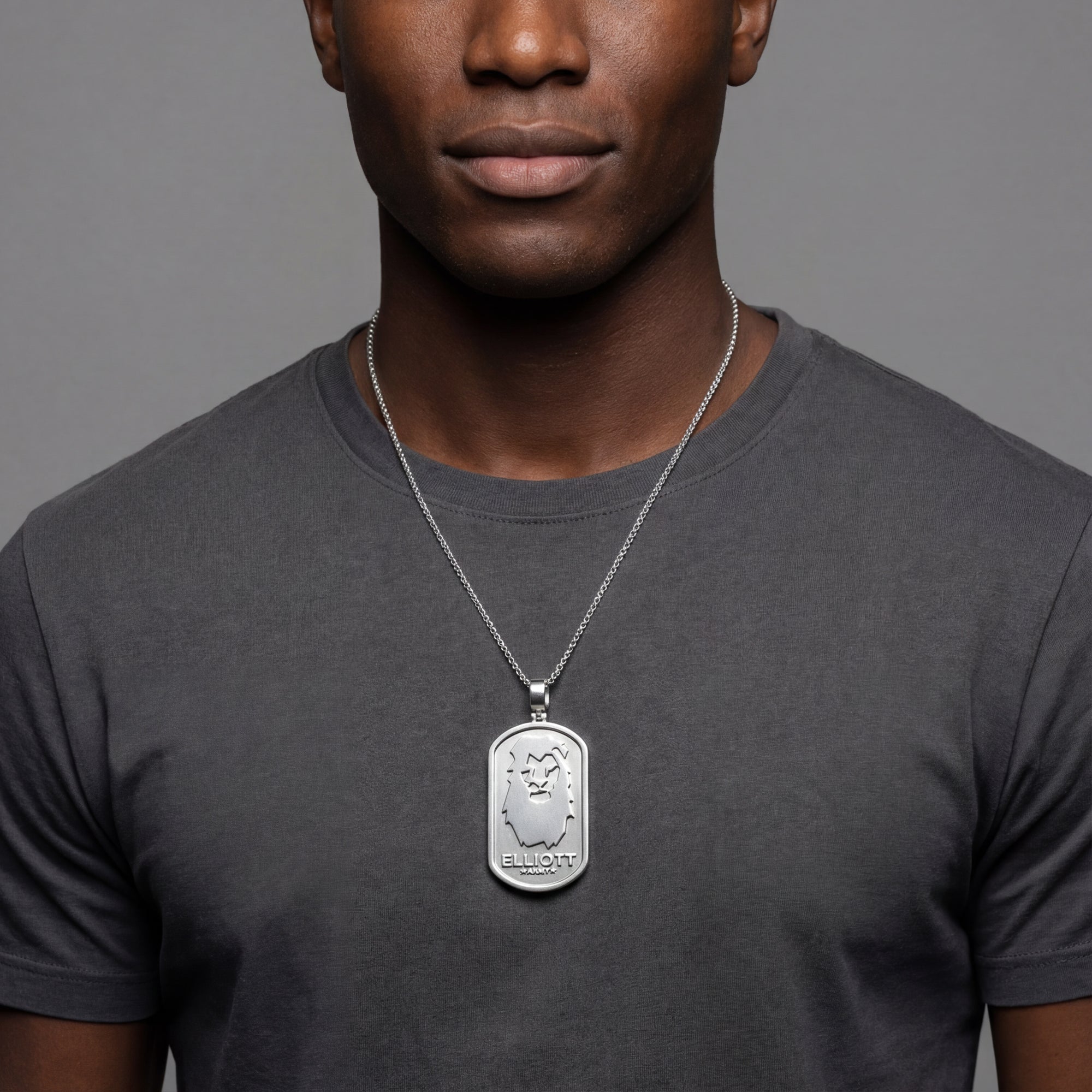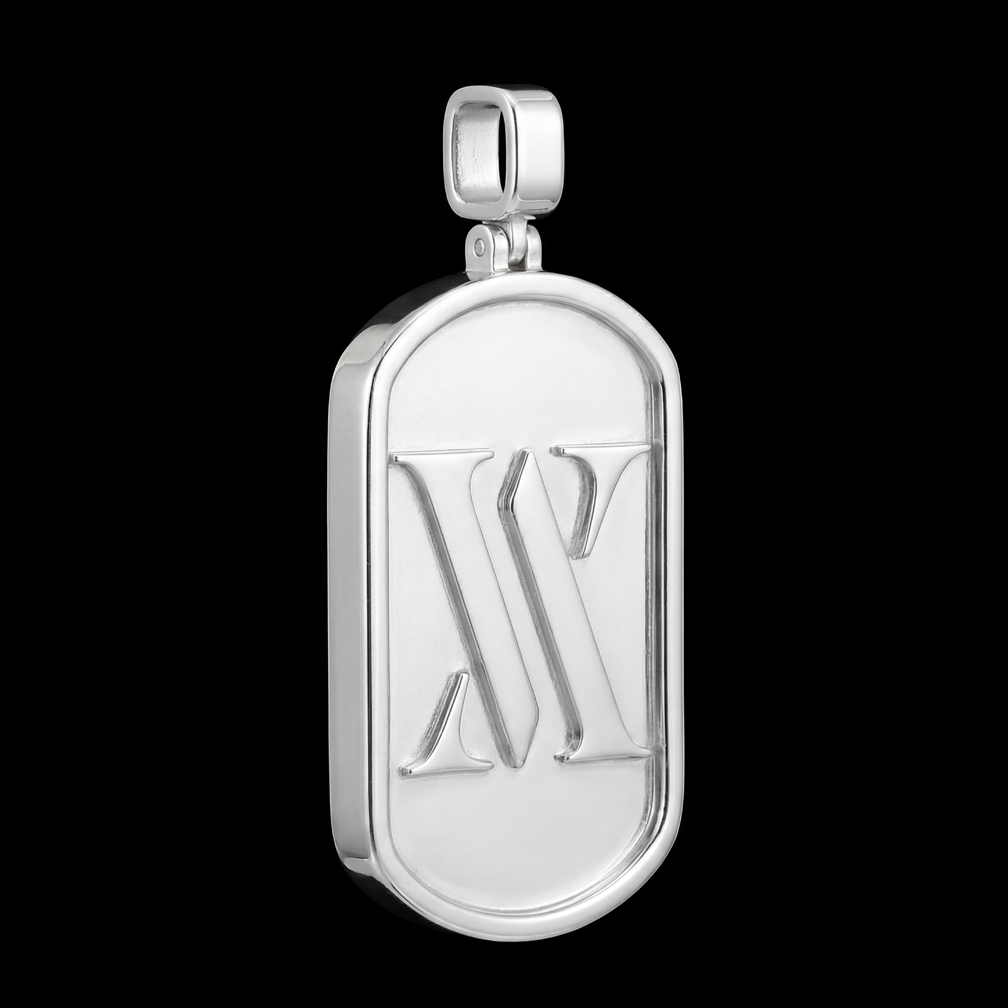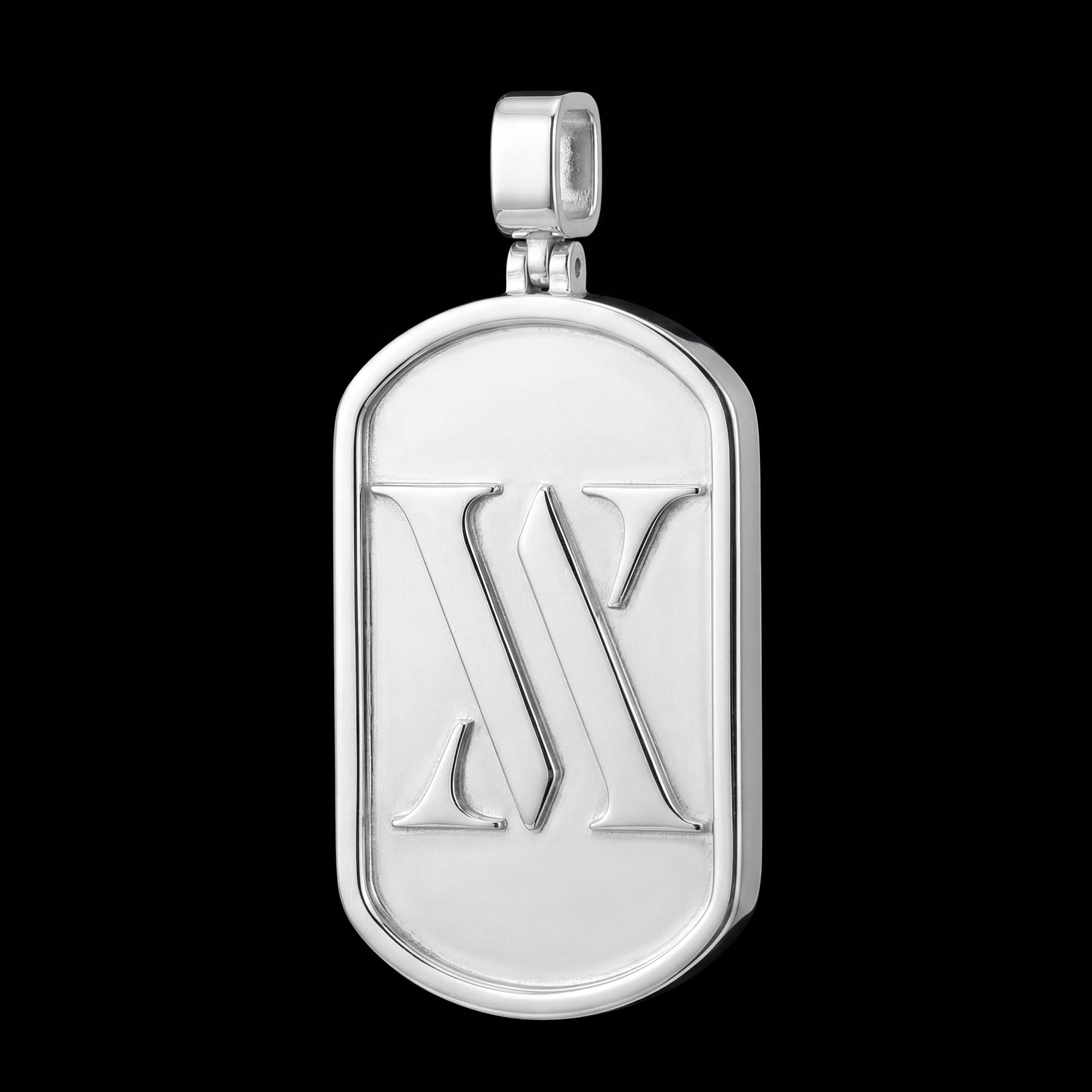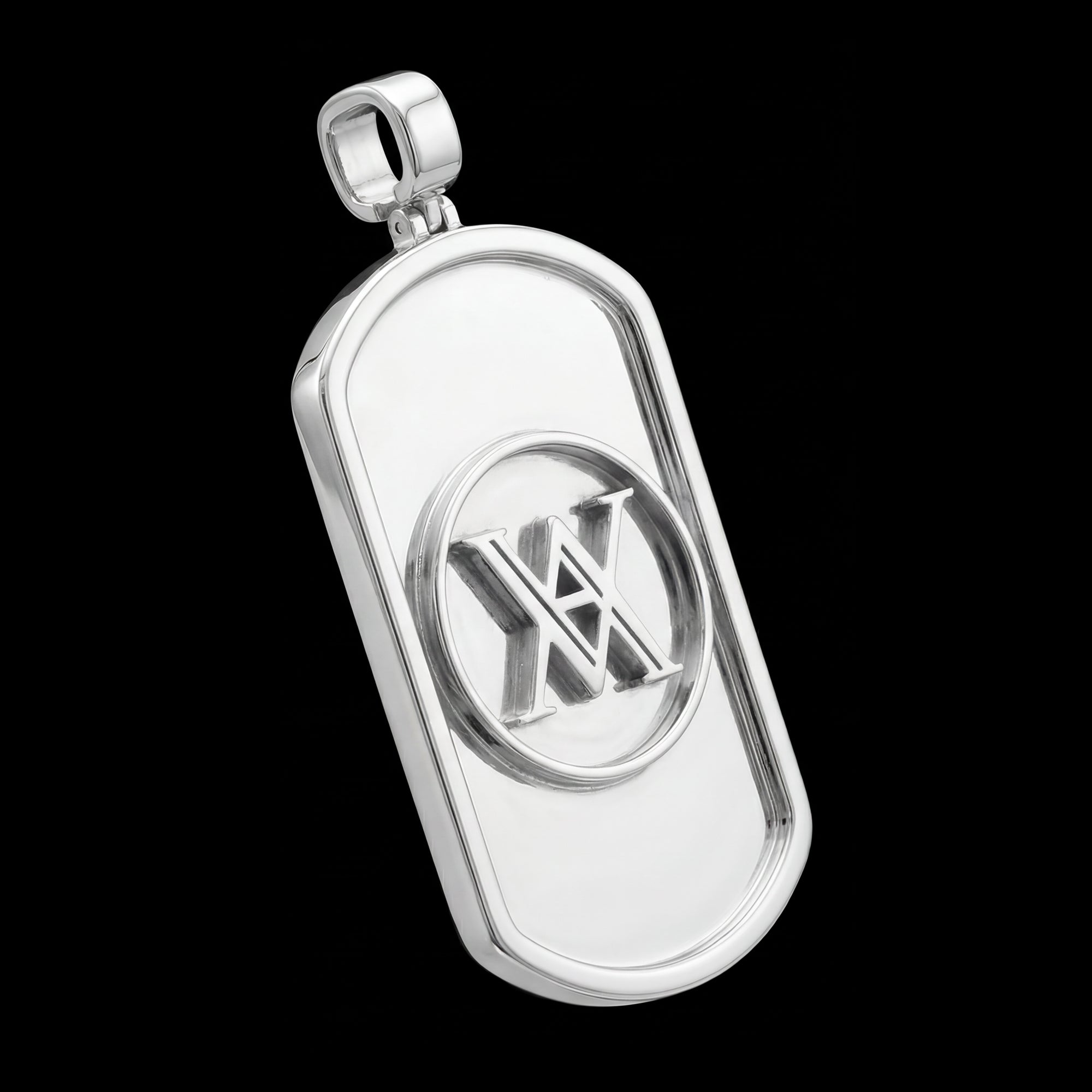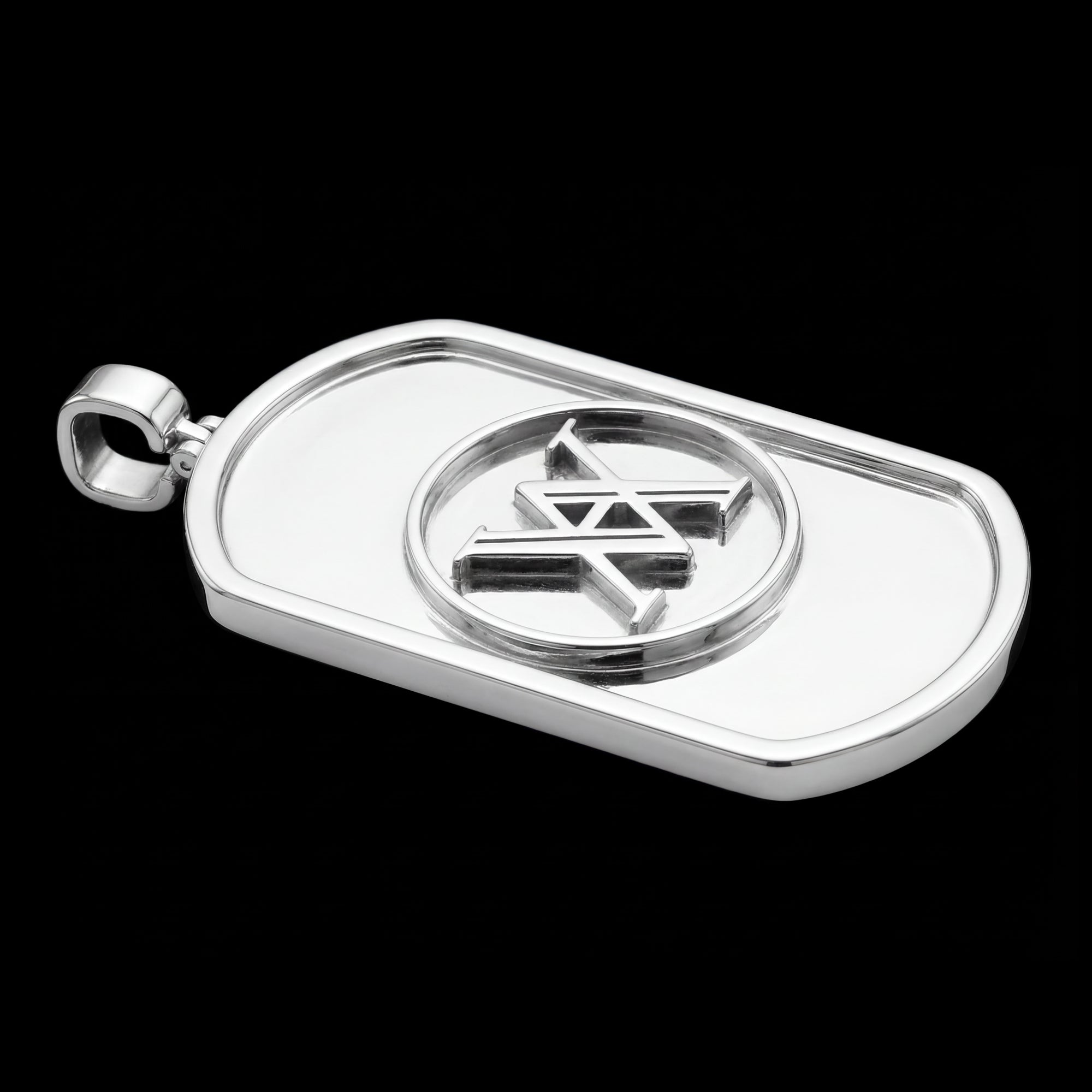 The Custom Sterling Silver Logo Dog Tag Pendant is made for those who want their identity to stand out.