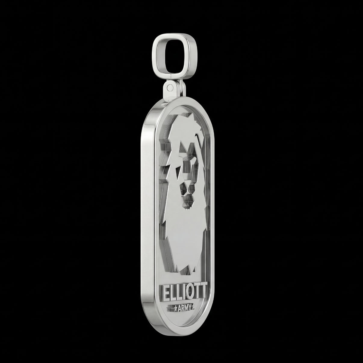 Crafted from solid 925 sterling silver, this dog tag features a clean, rounded-edge silhouette with a polished finish. The front can be customized with a raised 3D logo or icon, giving the piece depth, presence, and a bold visual statement.