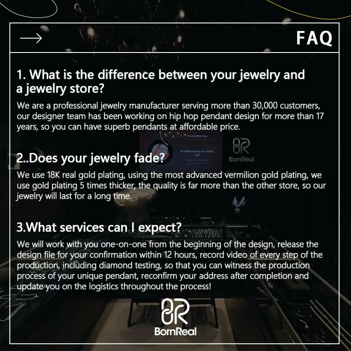 When your custom jewelry is ready, We will send you a diamond test video about your jewelry, you can walk through the whole process of making the custom pendant.we'll ship it via insured DHL Express within approximately 4 business days. It arrives in a custom jewelry box, adding an extra touch of elegance.