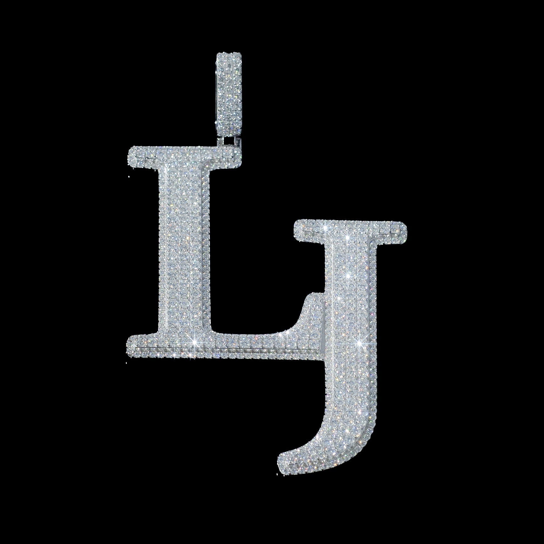Iced Out White Gold "LJ" Custom Letter Pendant
