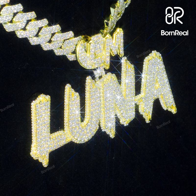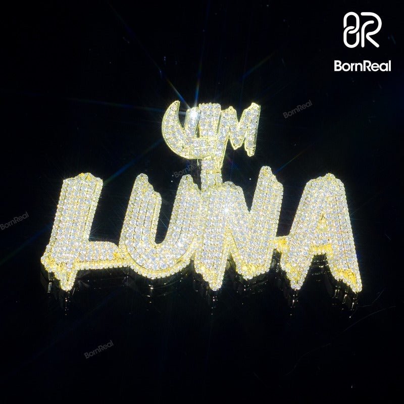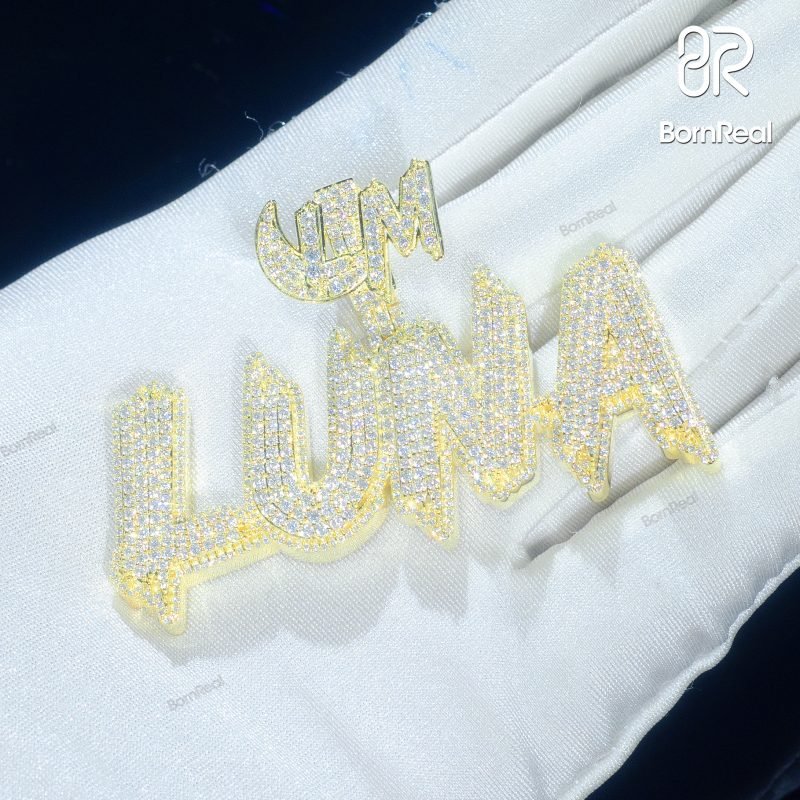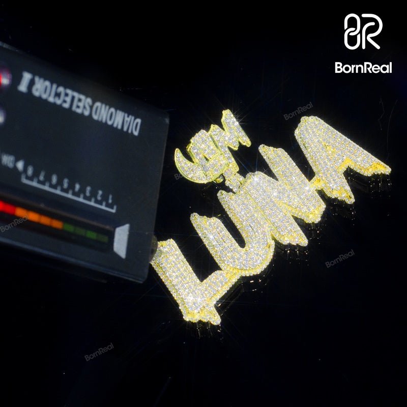 "LUNA" Iced Out Yellow Gold Custom Name Pendant with Custom Bail