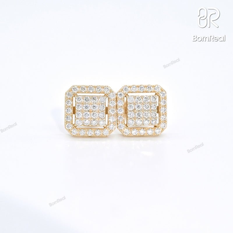 VVS Iced Out Yellow Gold 925 Silver Square Stud Earrings