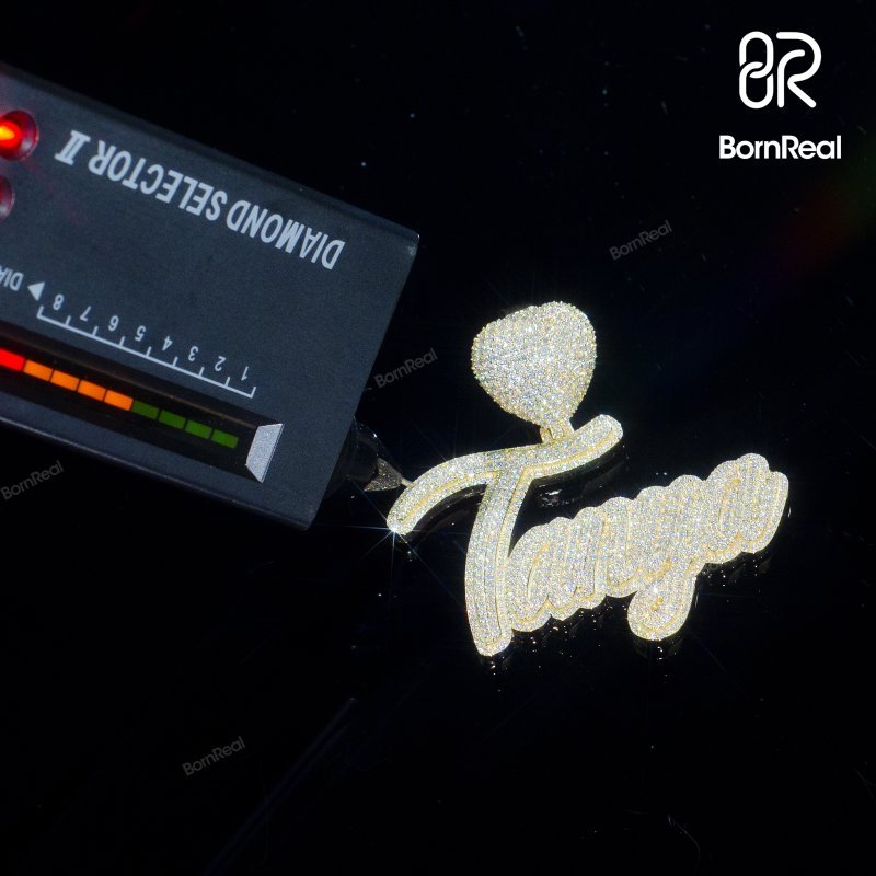 Yellow Gold Iced Out Cursive Custom Name Pendant