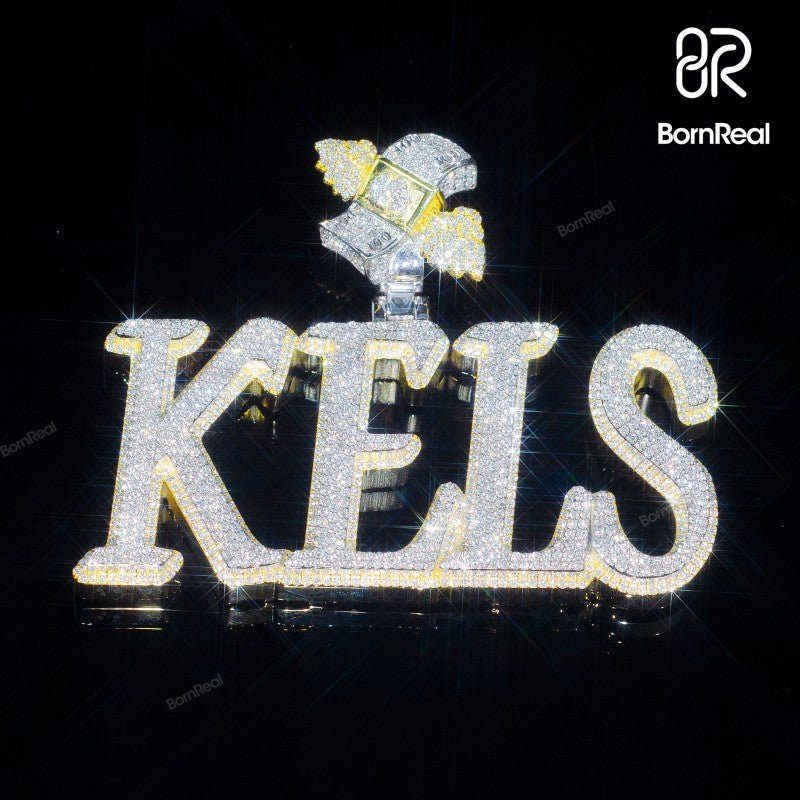 Yellow Gold Rose Gold Iced Out Custom Name Pendant with Custom Bail